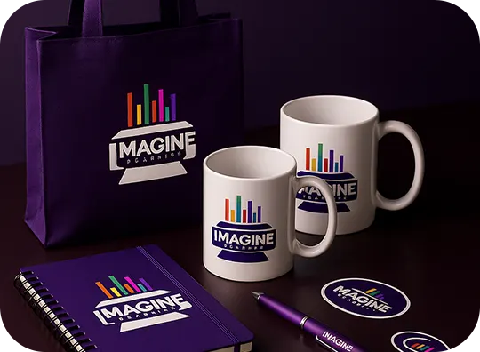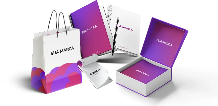 Brindes corporativos, blocos, planners, calendários.