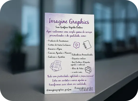 Panfletos, folders, cartões, catálogos e papelaria.